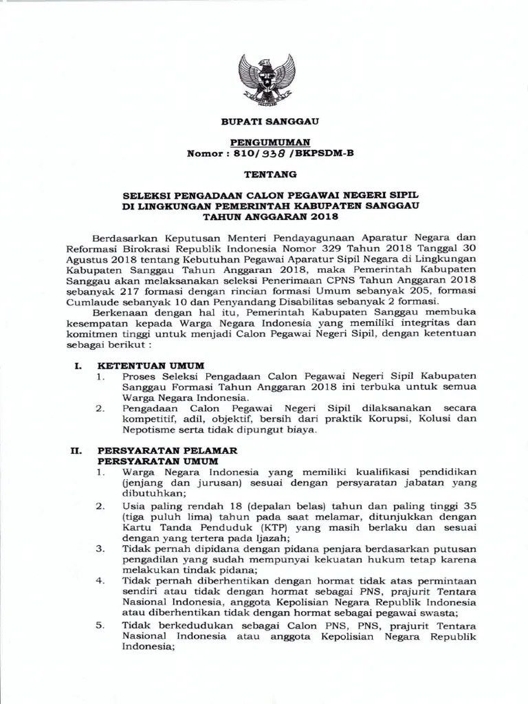 Info penerimaan cpns 2021 pemkab kabupaten sanggau.